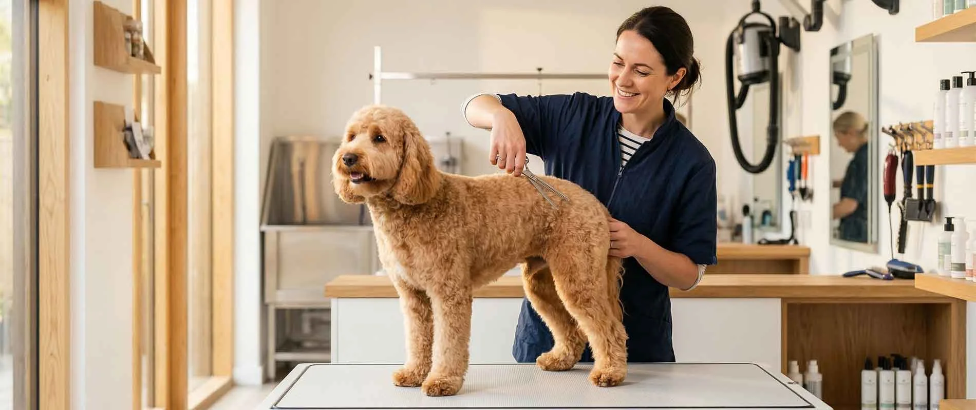 A calm, purpose-built salon designed to keep your dog relaxed and comfortable throughout their groom.